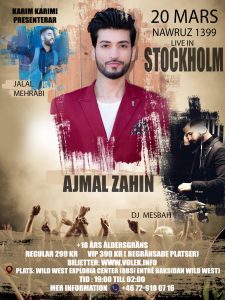 کنسرت نوروزی اجمل ذهین در شهر استکهلم تاریخ ۲۰ mars